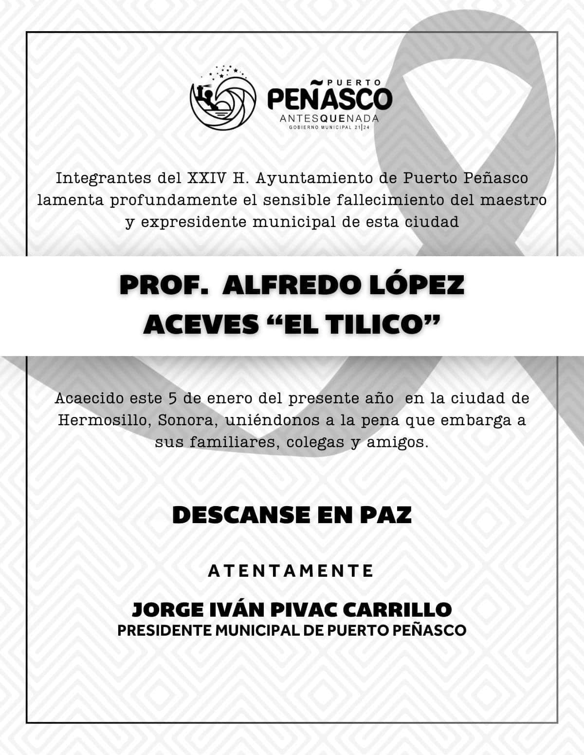 Nos unimos al sentir de la familia y amigos por el sensible fallecimiento del profesor y ex presidente municipal Alfredo López Aceves «Tilico» .
