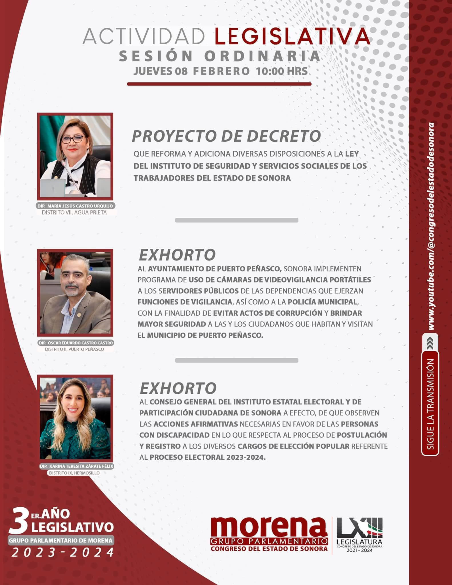 el diputado Dr. Oscar Eduardo Castro Castro y las legisladoras María Jesús Castro Urquijo y Karina Zárate, presentarán iniciativas en favor de las y los sonorenses.