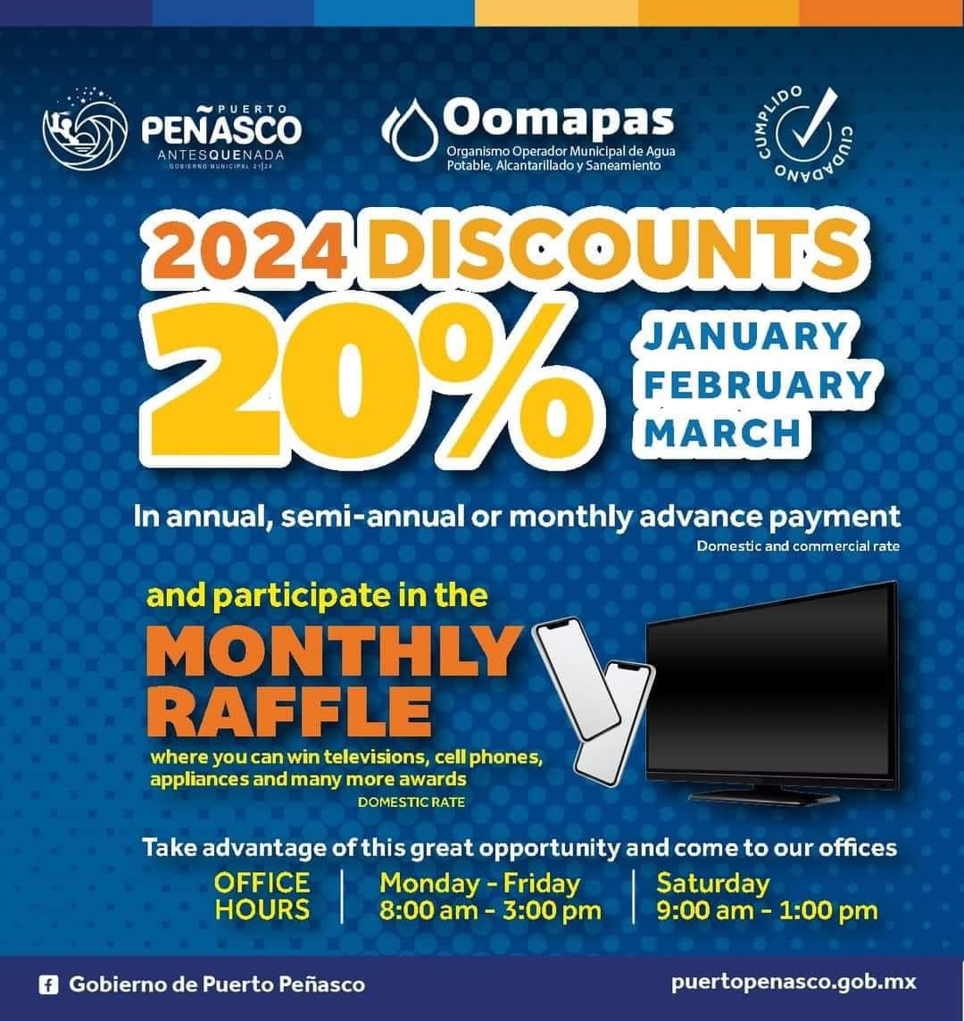 Aún estas a tiempo en este mes de febrero de aprovechar el -20% de descuento en pago anual, semestral o mensual que OOMAPAS tiene en las tarifas doméstica y comercial.