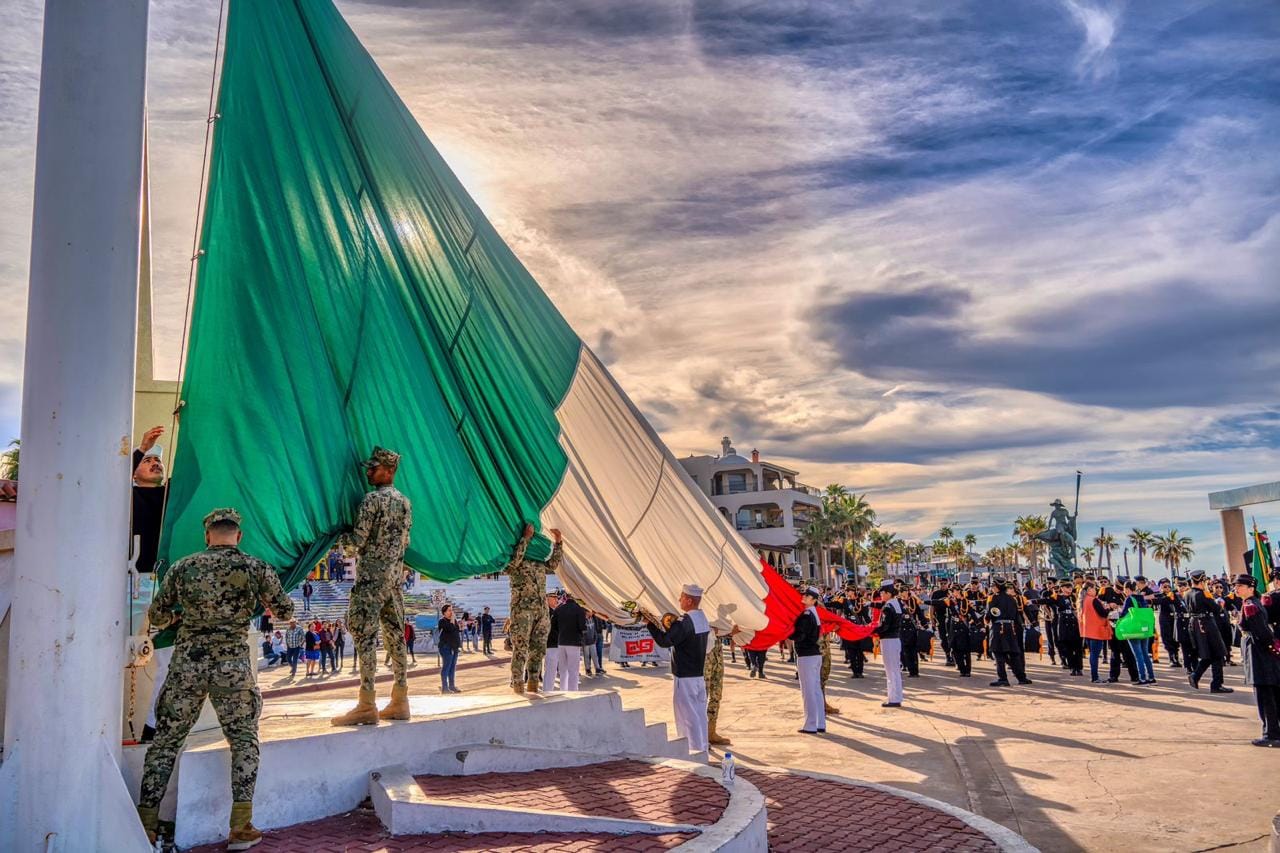 Posterior a la ceremonia de izamiento de bandera en la que estuvieron presentes autoridades militares, navales, servidores municipales , estudiantes y directivos escolares así como invitados especiales se realizó un desfile de escoltas y bandas de guerra desde el Malecón hasta la calle 11 pasando por Palacio Municipal donde se entregaron los trofeos a los primeros lugares del concurso de escoltas.