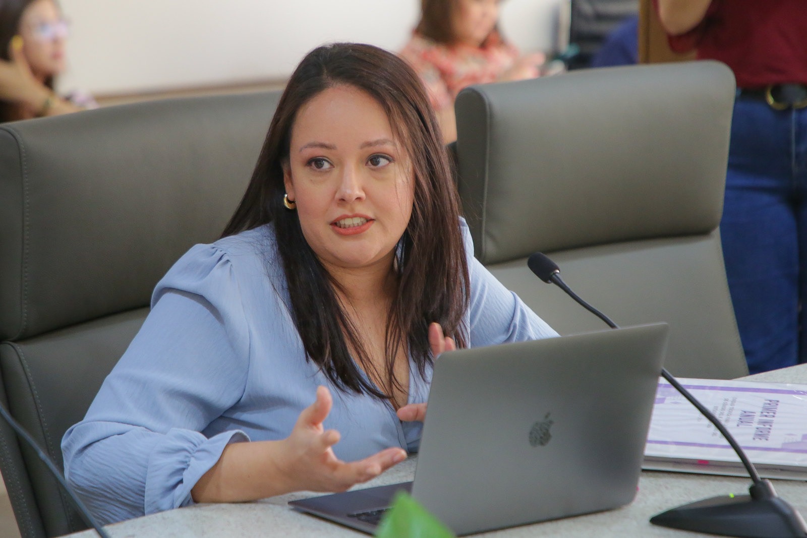 Acompañada por las diputadas Beatriz Cota Ponce (NA), Ivana Celeste Taddei Arriola (Morena) y Alejandra López Noriega (PAN), la diputada Rosa Elena Trujillo Llanes (MC), presidenta de la comisión, cedió el uso de la palabra a Jeannette Arrizón Marina, titular de la Unidad Técnica, para que realizara la presentación del informe anual de labores.