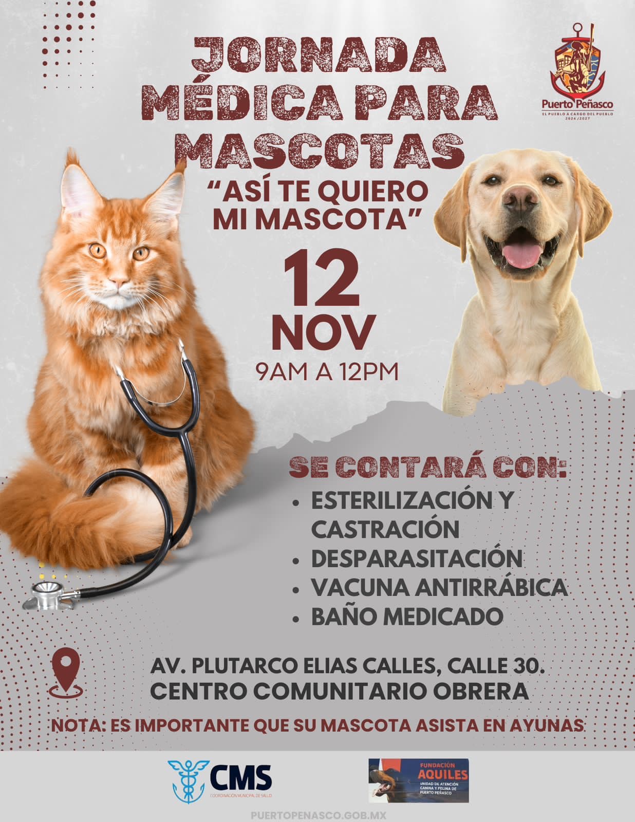 El Gobierno Municipal, en coordinación con la Coordinación Municipal de Salud y Control Animal, se complace en anunciar el regreso de las Jornadas Médicas Periódicas para mascotas durante el mes de noviembre. A SI TE QUIERO MI MASCOTA