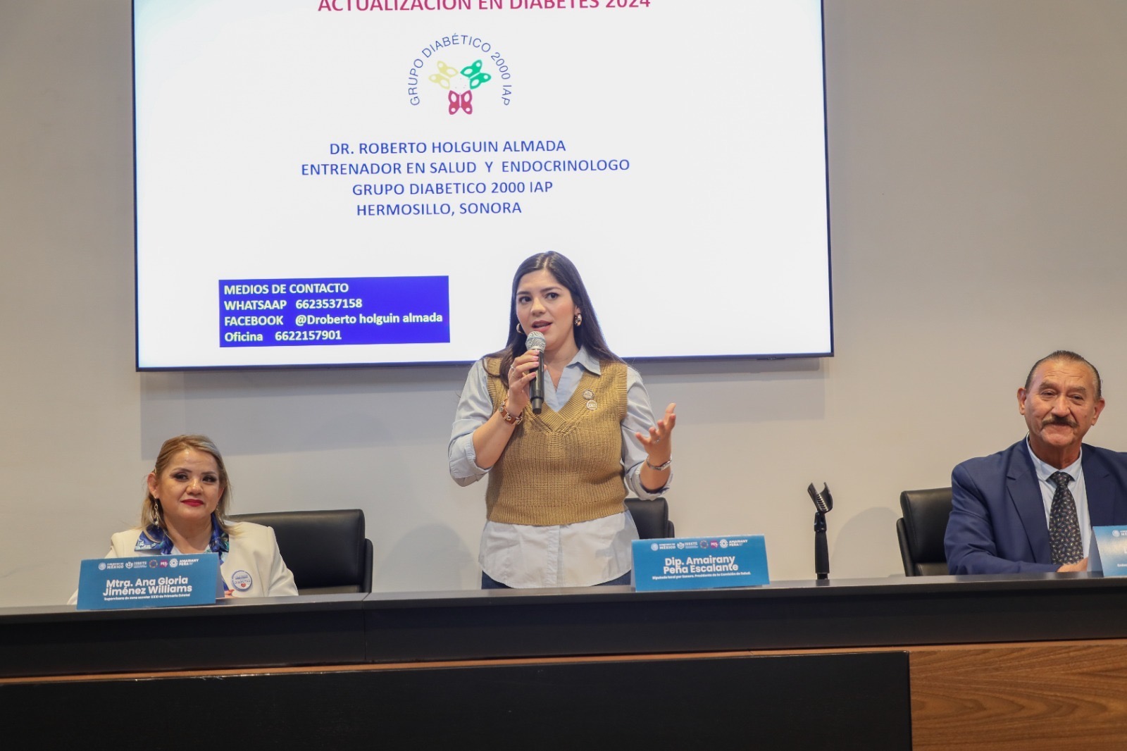 Hermosillo, Sonora; 11 de noviembre de 2024.- Para sensibilizar a la población sobre la detección y prevención de la diabetes, la diputada Amairany Peña Escalante (PES), presidenta de la Comisión de Salud del Congreso de Sonora, organizó la conferencia “La diabetes se puede prevenir”.