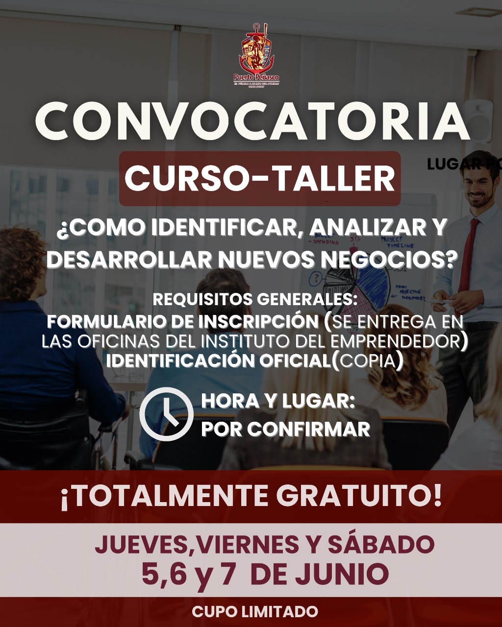 El Gobierno Municipal de Puerto Peñasco, a través del Instituto Municipal del Emprendedor, invita a la ciudadanía en general a participar en el curso-taller titulado “¿Cómo identificar, analizar y desarrollar nuevos negocios?”, el cual tiene como finalidad impulsar el emprendimiento local mediante el fortalecimiento de habilidades y conocimientos clave para iniciar o mejorar un negocio.