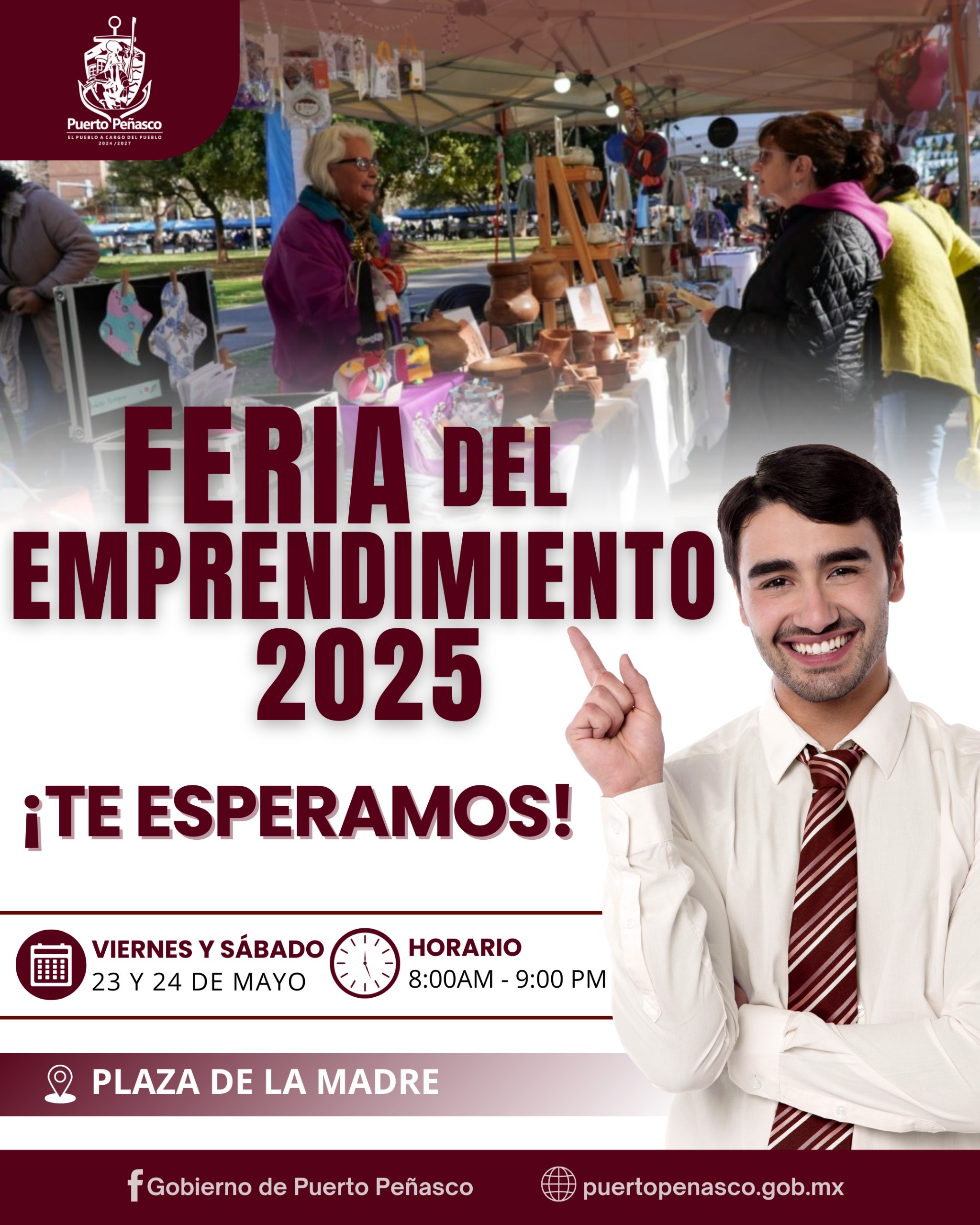 El Gobierno Municipal de Puerto Peñasco, encabezado por el presidente municipal, Dr. Óscar Castro, invita a la comunidad a la Feria Municipal del Emprendedor, organizada por el Instituto Municipal del Emprendedor. Un espacio para impulsar el crecimiento económico y la innovación.