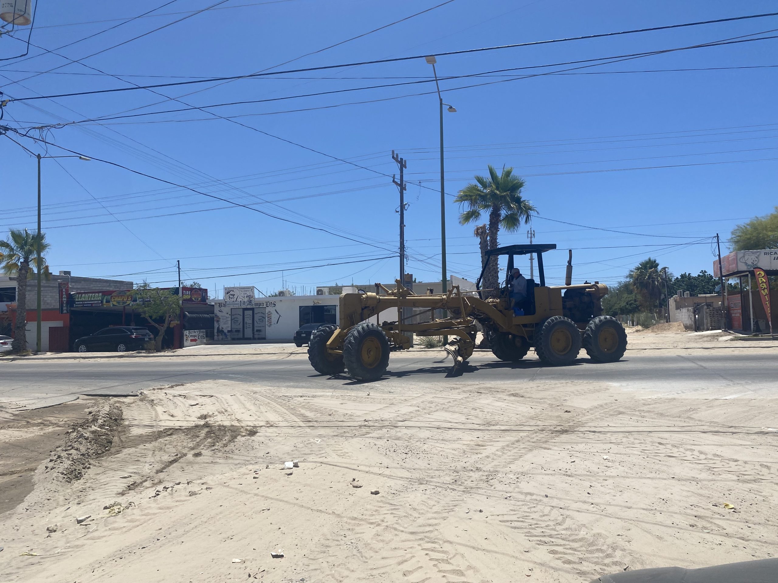 Desde tempranas horas, la maquinaria y pipas de Sevicios Públicos siguen trabajando en las diferentes calles principales de las colonias de Puerto Peñasco.