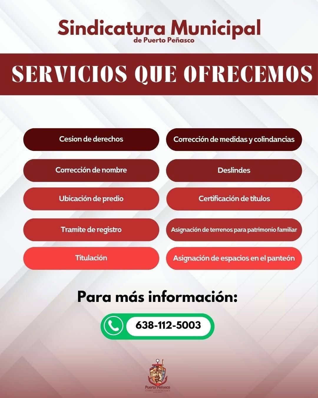 El Gobierno Municipal de Puerto Peñasco, a través de la Sindicatura Municipal, pone a disposición de la comunidad el siguiente número de atención de What´s App para servicios: