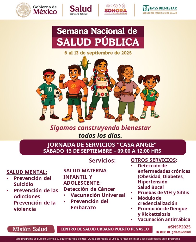 El Próximo sábado 13 de septiembre se llevará a cabo la Semana Nacional de Salud Pública en Puerto Peñasco con una gran jornada de servicios médicos y salud mental.