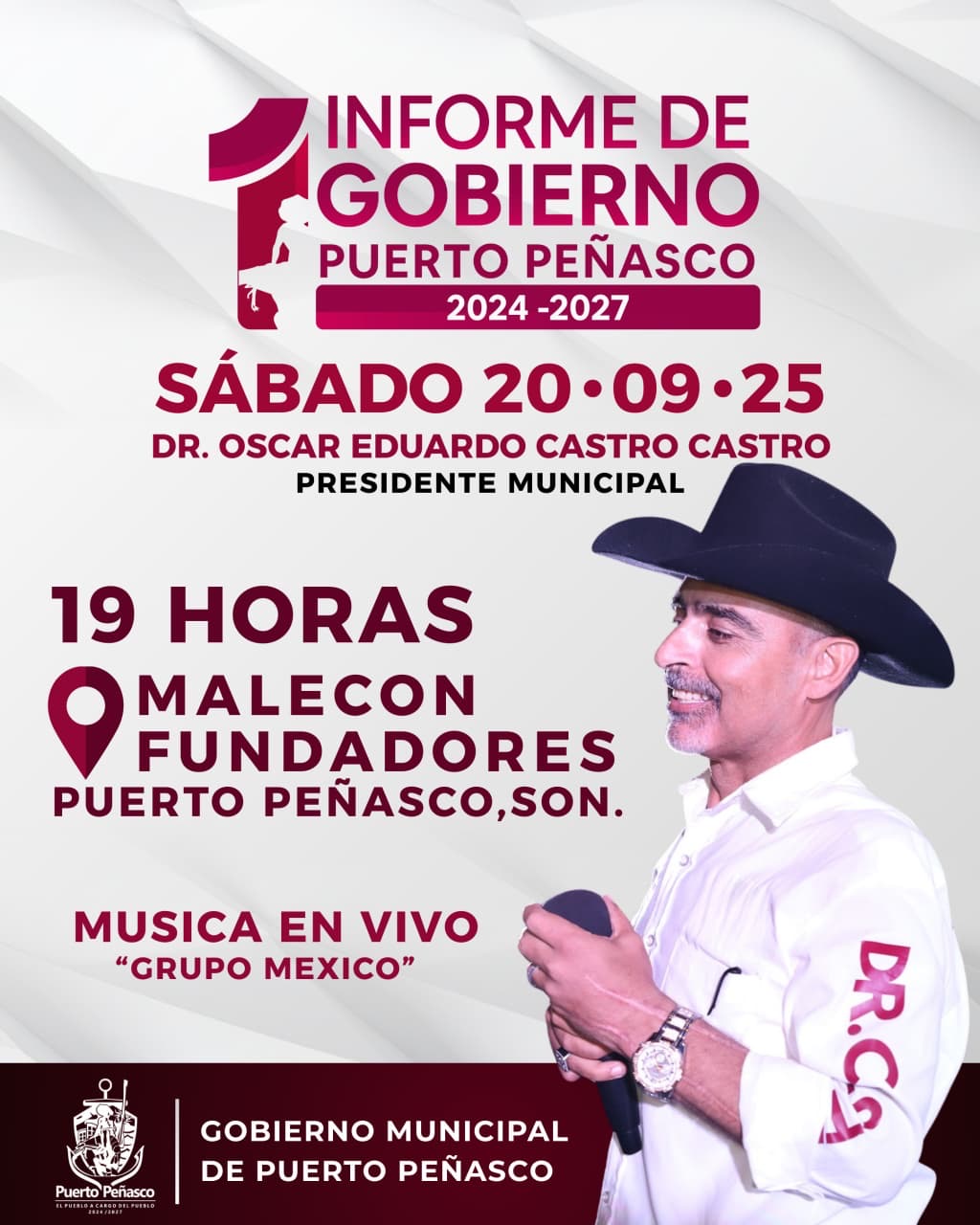 El Gobierno Municipal te invita a la presentación del mensaje del Primer Informe de Gobierno 2024–2027 del alcalde, Dr. Óscar Eduardo Castro Castro.