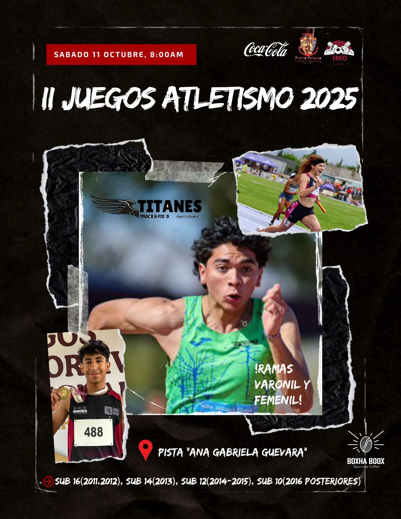 La Liga Municipal de Atletismo de Puerto Peñasco y el Club Titanes, en coordinación con el Instituto Municipal del Deporte (IMD), tienen el honor de invitar a toda la comunidad a participar en los II Juegos de Atletismo 2025, un evento diseñado para fomentar la actividad física entre la niñez y juventud, así como para detectar nuevos talentos que puedan representar a nuestro municipio en competencias escolares y en la Olimpiada Nacional 2026.