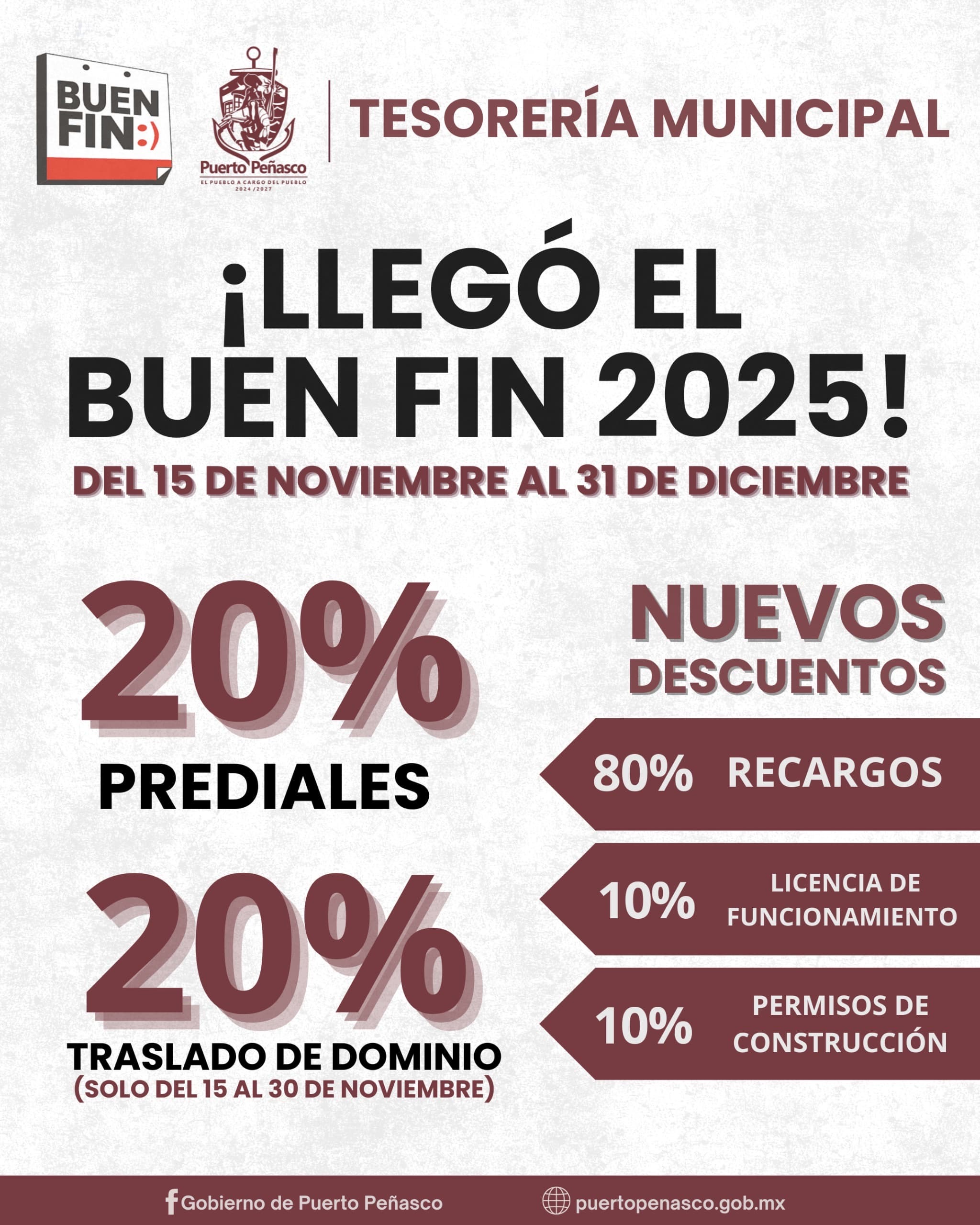 Consulta más información en puertopenasco.gob.mx o acude a las oficinas de Tesorería Municipal.