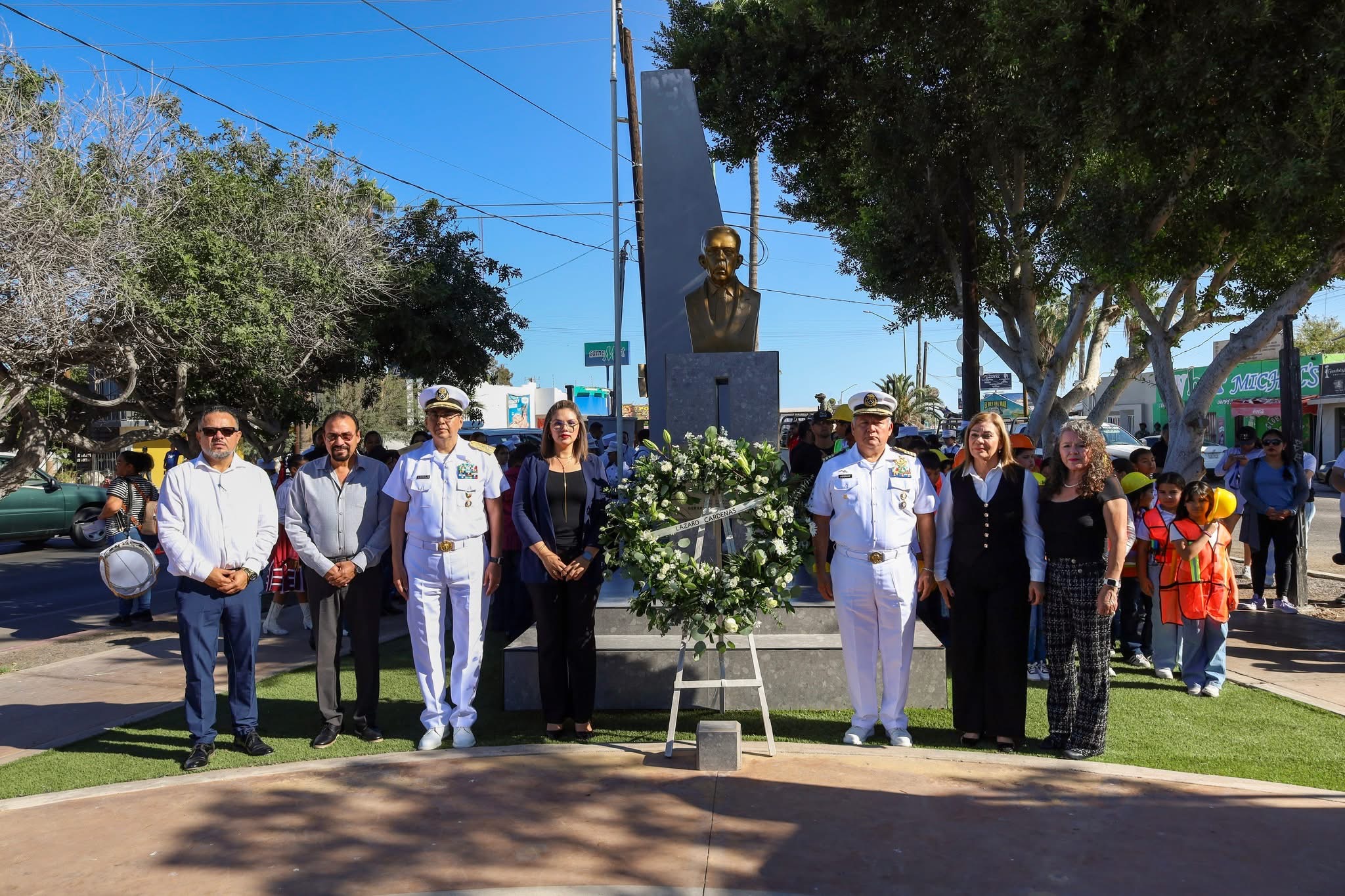 A la ceremonia realizada a las 09:00 horas en la Plaza Lázaro Cárdenas, asistieron autoridades civiles, navales, educativas y estudiantes.