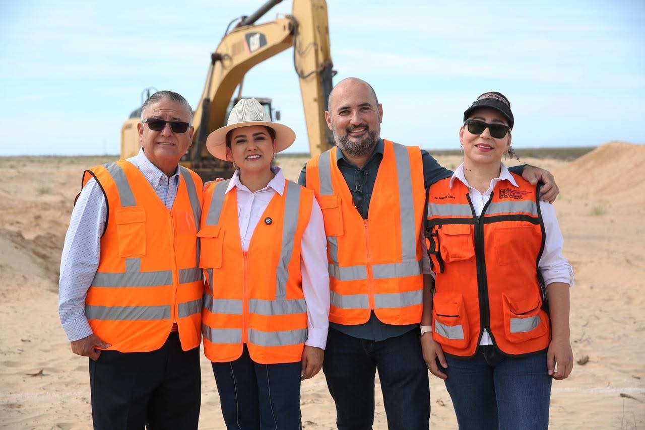 El Presidente Municipal Alejandro Verdugo, Acompañado de Celida López de SAGARHPA Alejandra Castro de SIDUR y del diputado Rubén González supervisaron los inicios de la construcción de la primera celda del relleno sanitario, que por fin será una realidad con una inversión estatal de 45 mdp.