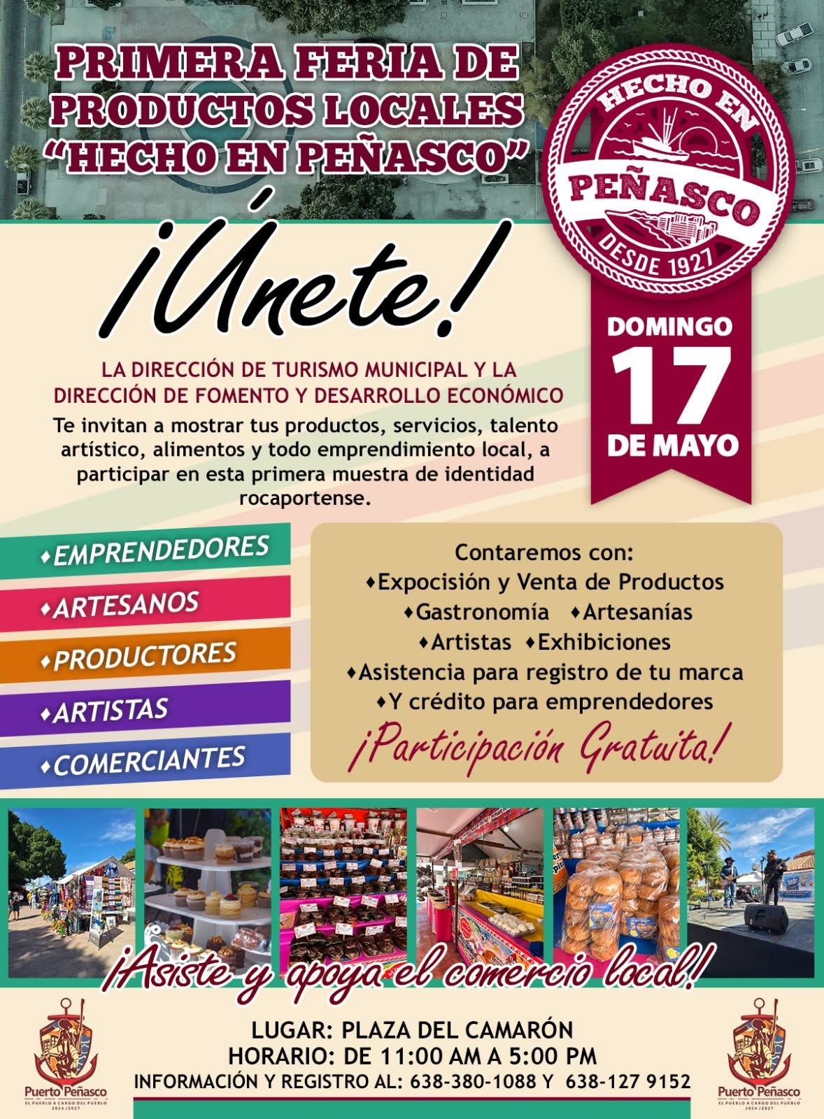 La Dirección de Turismo y la Dirección de Fomento y Desarrollo Económico te invitan a participar en la Primera Feria de Productos Locales «Hecho en Peñasco».