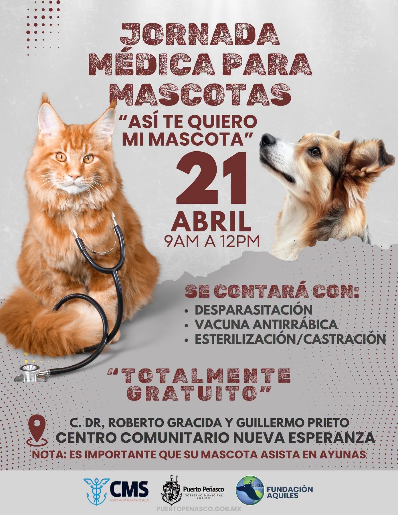 El Gobierno Municipal de Puerto Peñasco invita a la ciudadanía a participar en la Jornada Médica Gratuita para Mascotas, organizada por la Coordinación Municipal de Salud y Control Animal.